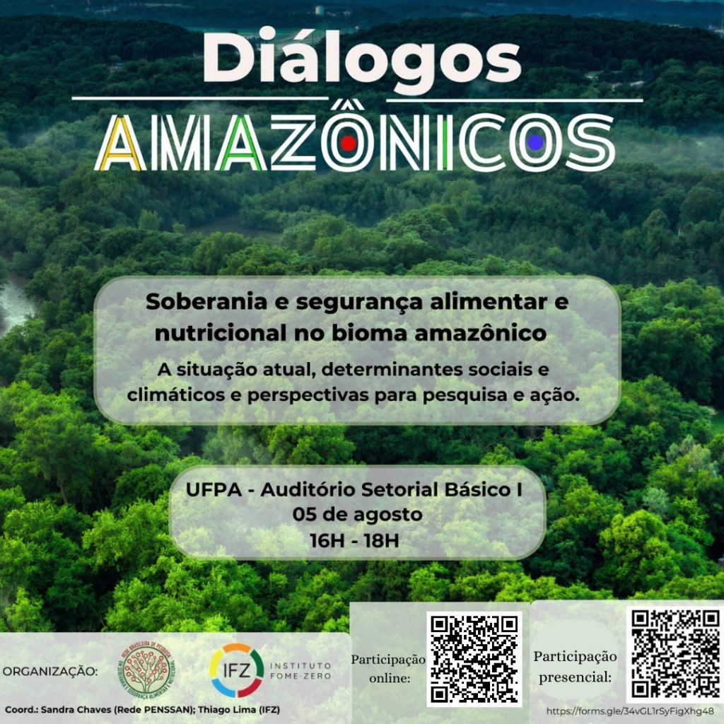 A atividade da Rede PENSSAN e do IFZ, intitulada “Soberania e segurança alimentar e nutricional no bioma amazônico”, será realizada às 16h no Auditório Setorial Básico da Universidade Federal do Pará (UFPA). As inscrições estão abertas, tanto para participação presencial como online. O objetivo, assim como de toda a programação dos Diálogos Amazônicos, é discutir políticas e estratégias para a região amazônica, e gerar relatórios que serão entregues a chefes de Estado e gestores públicos durante a Cúpula.