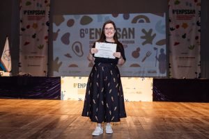 Jéssica Ribeiro, de 34 anos, ganhou menção honrosa por apresentar, no GT 2 (Produção e processamento de alimentos para sistemas alimentares saudáveis), o Curso Superior de Tecnologia em Alimento na Educação do Campo que ela ministra na Universidade Federal do Recôncavo Baiano, em Feira de Santana (BA).